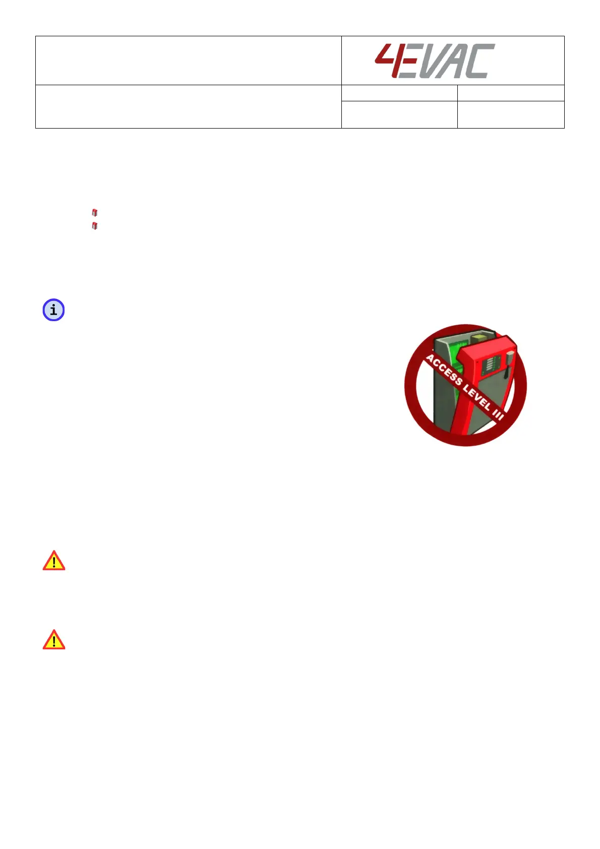 responsibility. If you have doubts about your status and access level permissions, please contact the 4EVAC