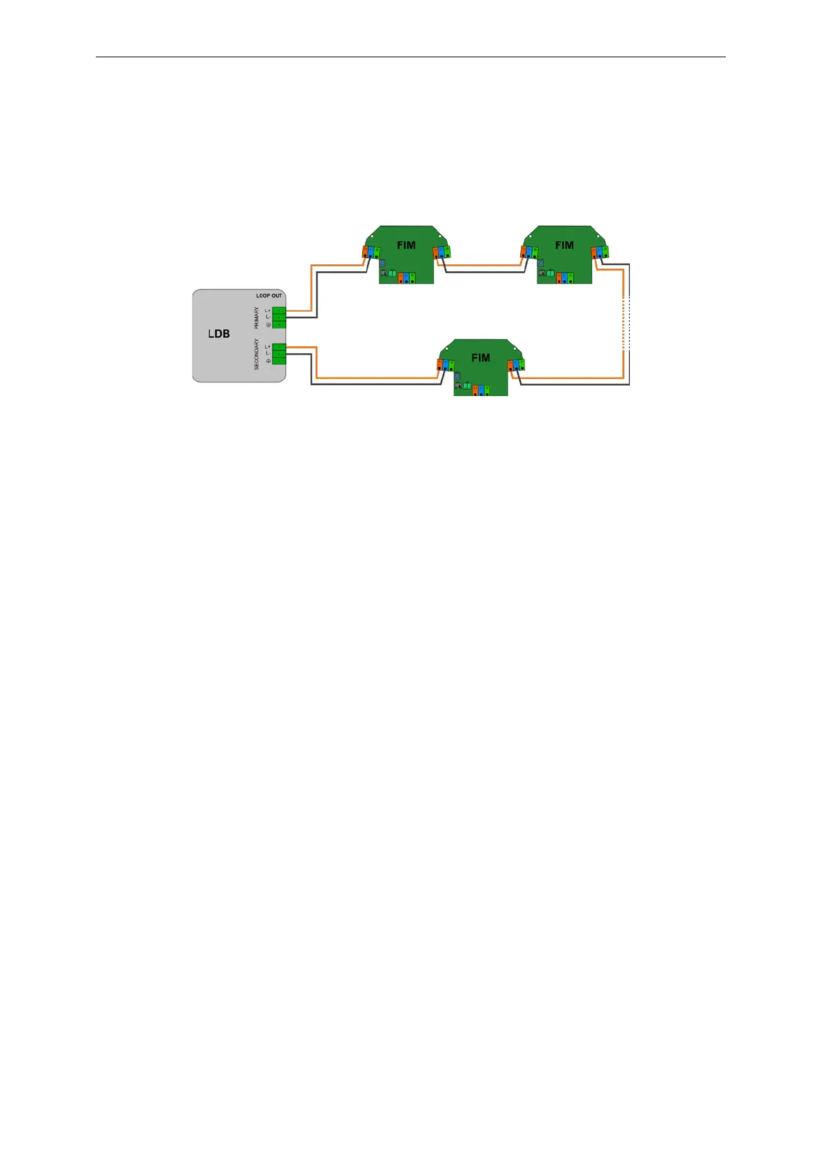 f. Connect FIM to the loop cable on the PRIMARY side of LDB. Mind the cable polarity!