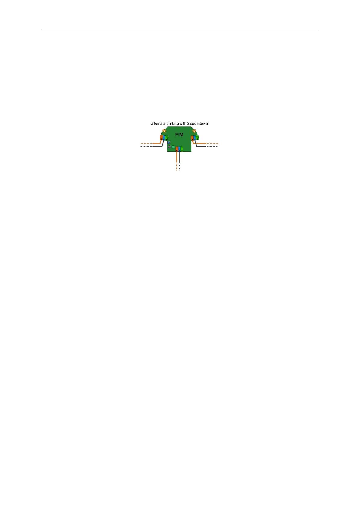 and B indicators will blink fast orange alternately with 2 seconds intervals. Both relays of the FIM are open, creating