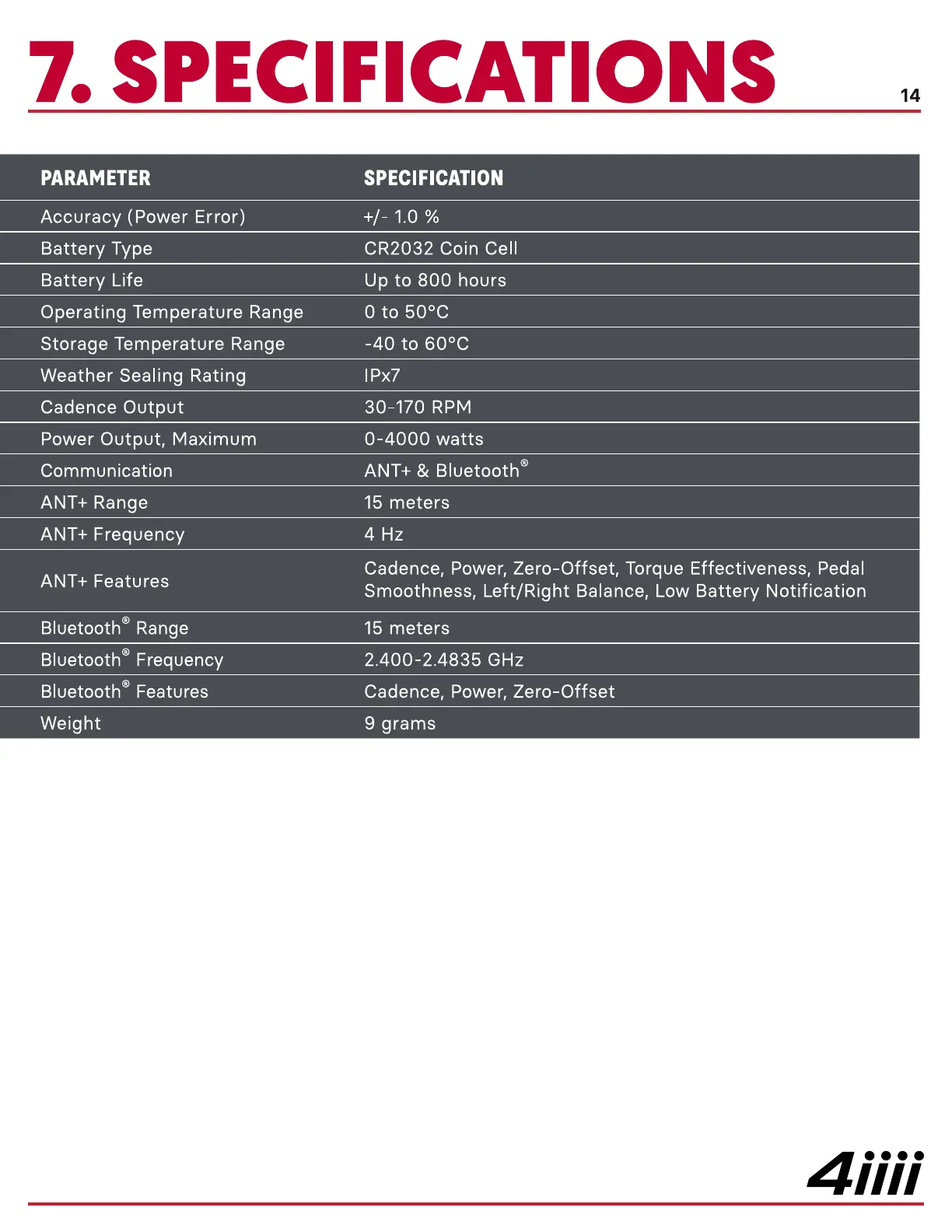 Cadence, Power, Zero-Offset, Torque Effectiveness, Pedal