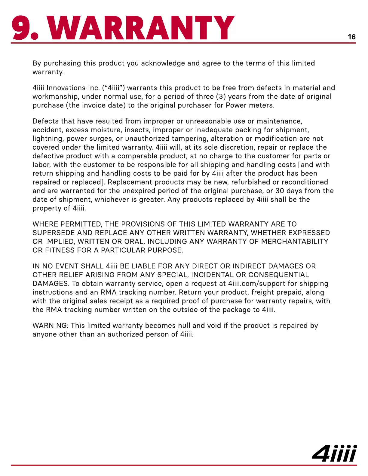 DAMAGES. To obtain warranty service, open a request at 4iiii.com/support for shipping