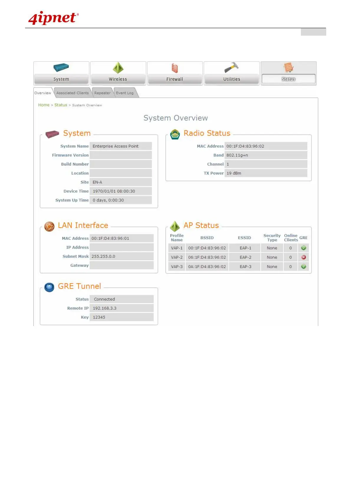 After a successful login into EAP200, a System Overview page of the Web Management Interface
