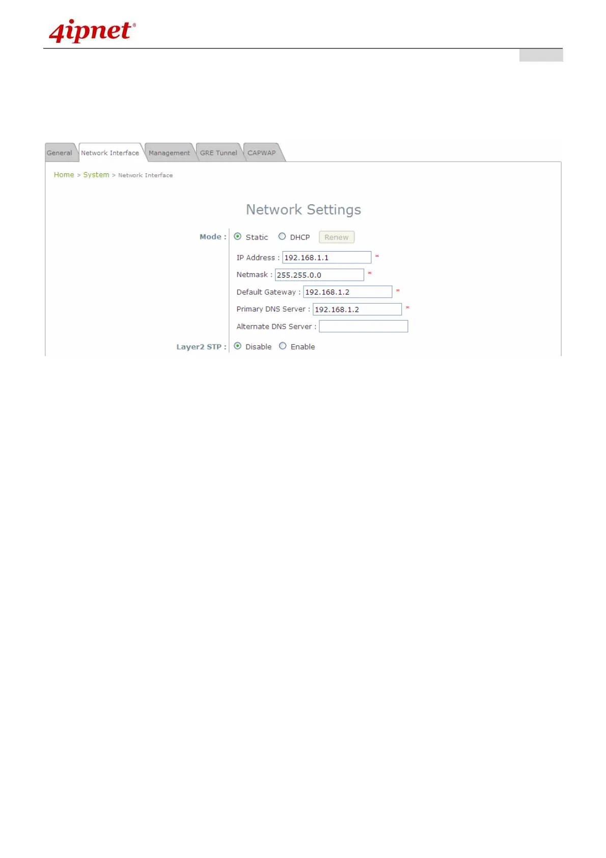 Please select Enable in the field labeled Layer2 STP. This will prevent data from looping or a broadcast