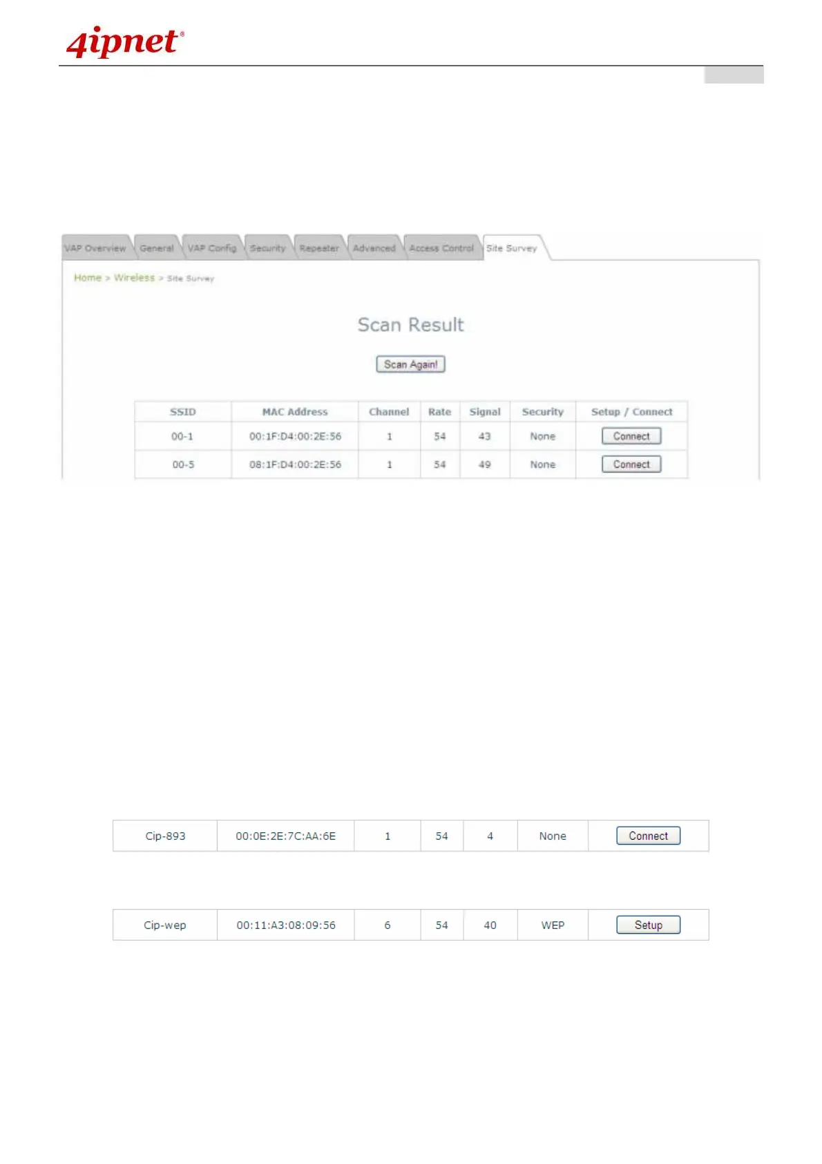 o Connect: Click Connect to associate with the respective AP directly; no further configuration is