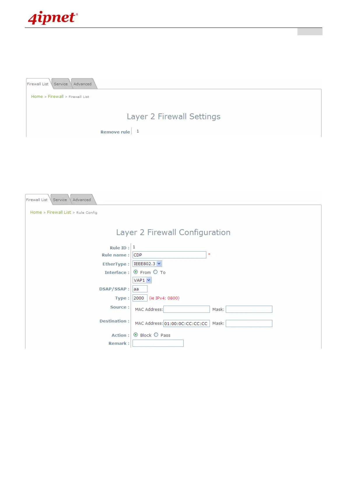 Ed in Setting column of firewall list will lead to the following page for detail configuration. From this page,