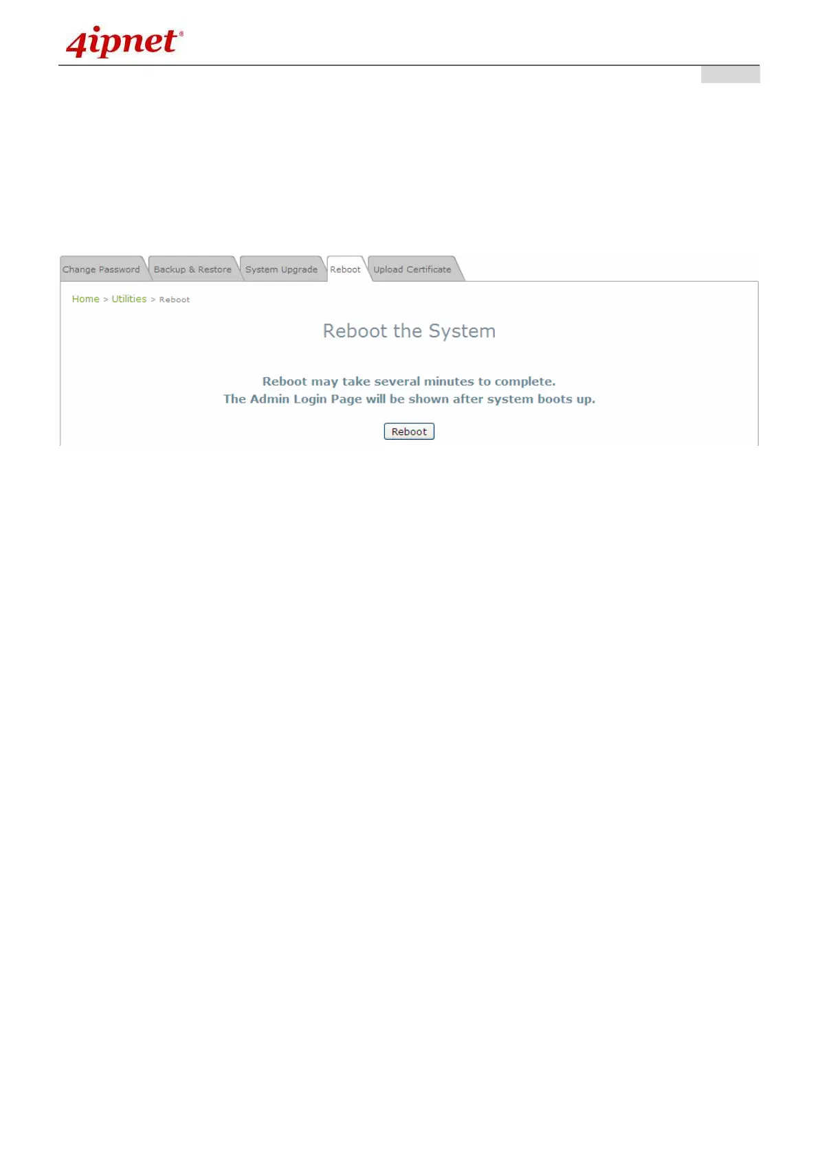 minutes. Click Reboot to restart the system. Please wait for the blinking timer to complete its countdown