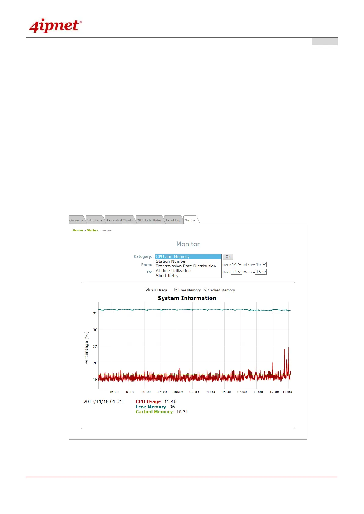For a quick overview on the AP’s performance, the ‘Monitor’ feature displays an RRD graph recording