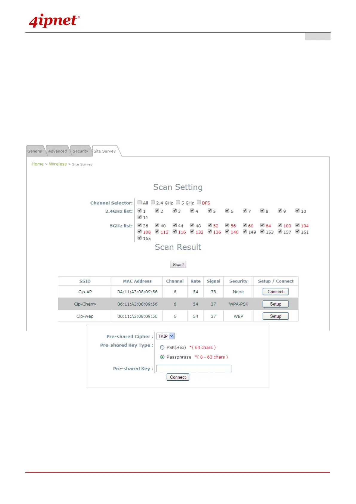 The administrator can click Setup or Connect to configure the wireless connection according to the mentioned