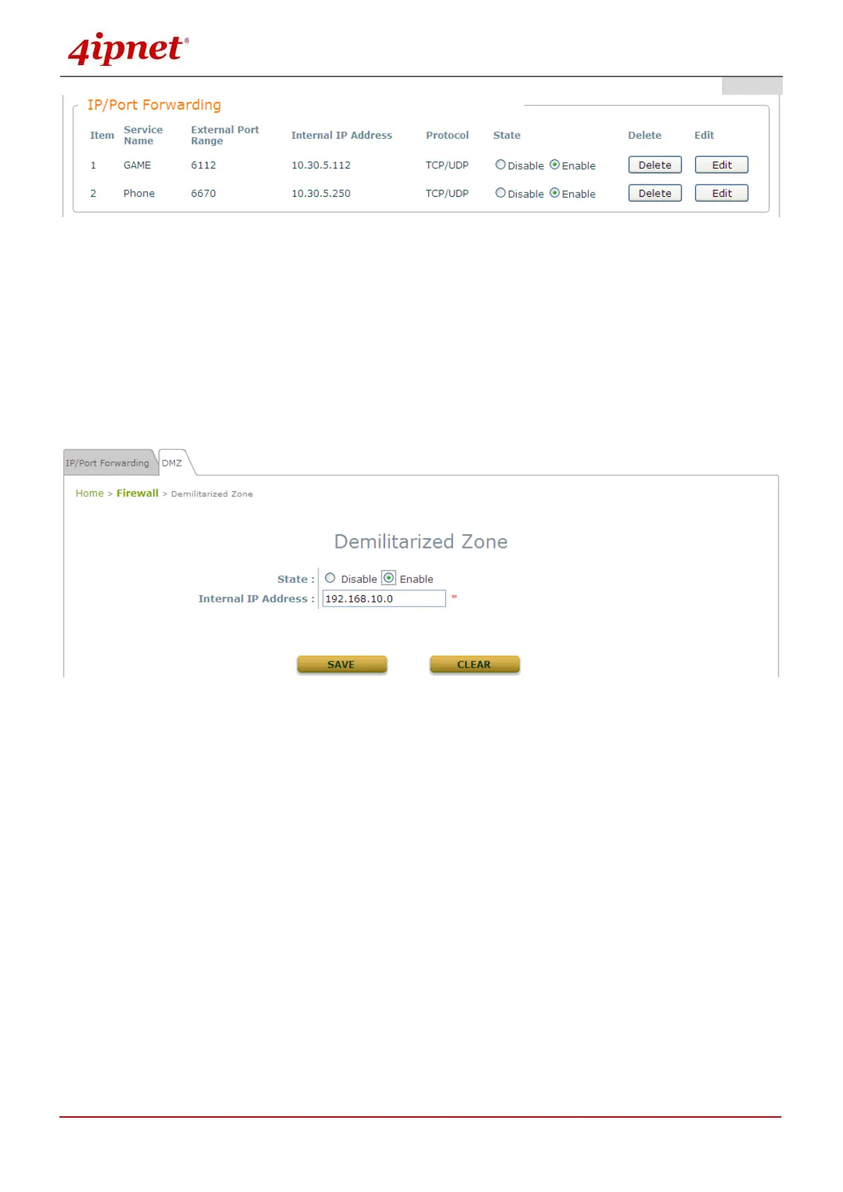 Internal IP Address: Fill in the internal IP address to allow system forwarding traffic other than those
