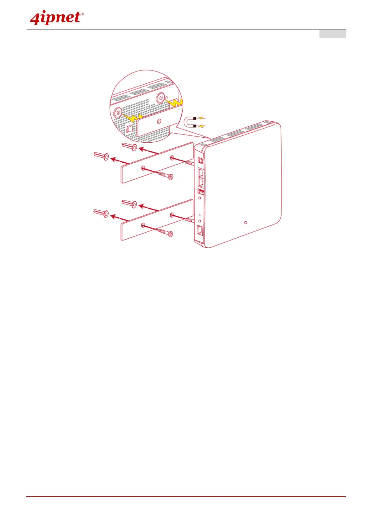 - Attach the two magnetic wall mount strips to the selected location using the screws as shown below
