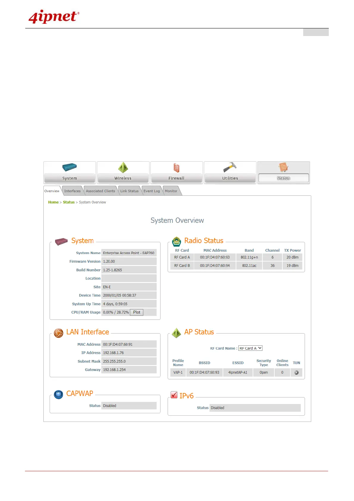 Web Management Interface Main Page (System Overview)