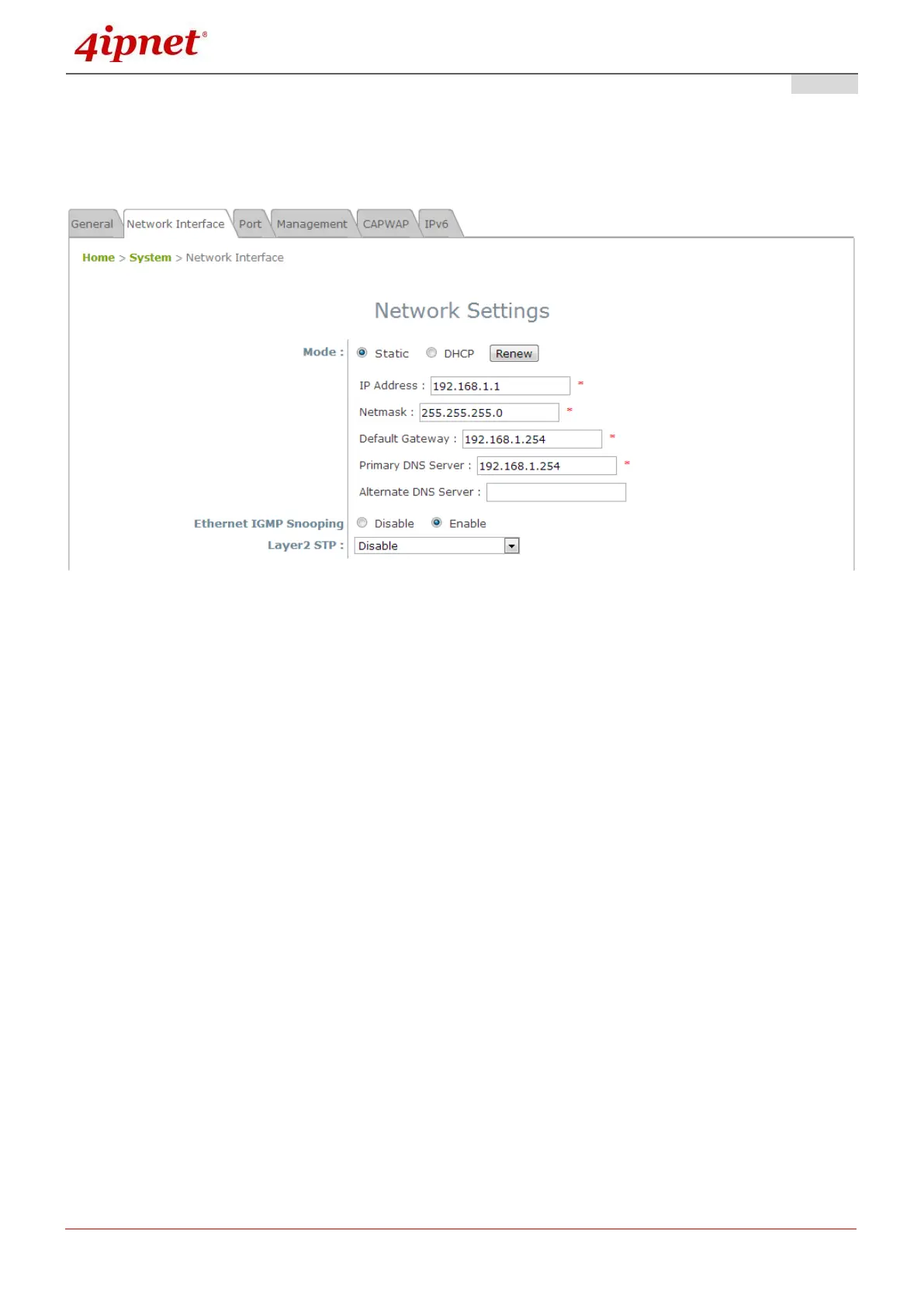 While still on this Page, click on the Network Interface tab to begin configuration of the network