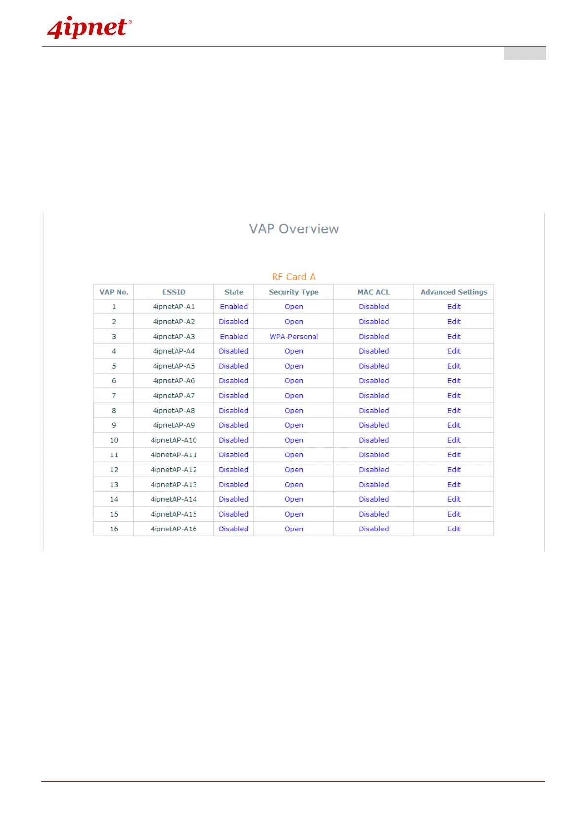 On the VAP Overview page, check the table to confirm the VAP State. If it is Enabled, skip to Step 2.