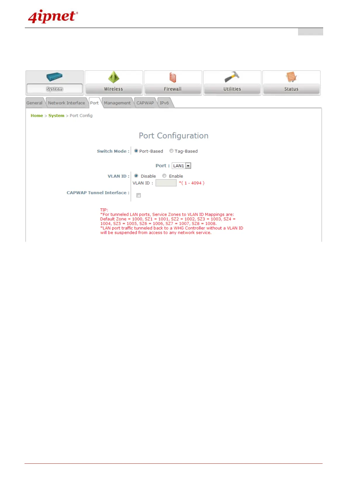 *Switch Mode: Select Port-Based to set VLAN IDs on physical LAN ports. Select Tag-Based