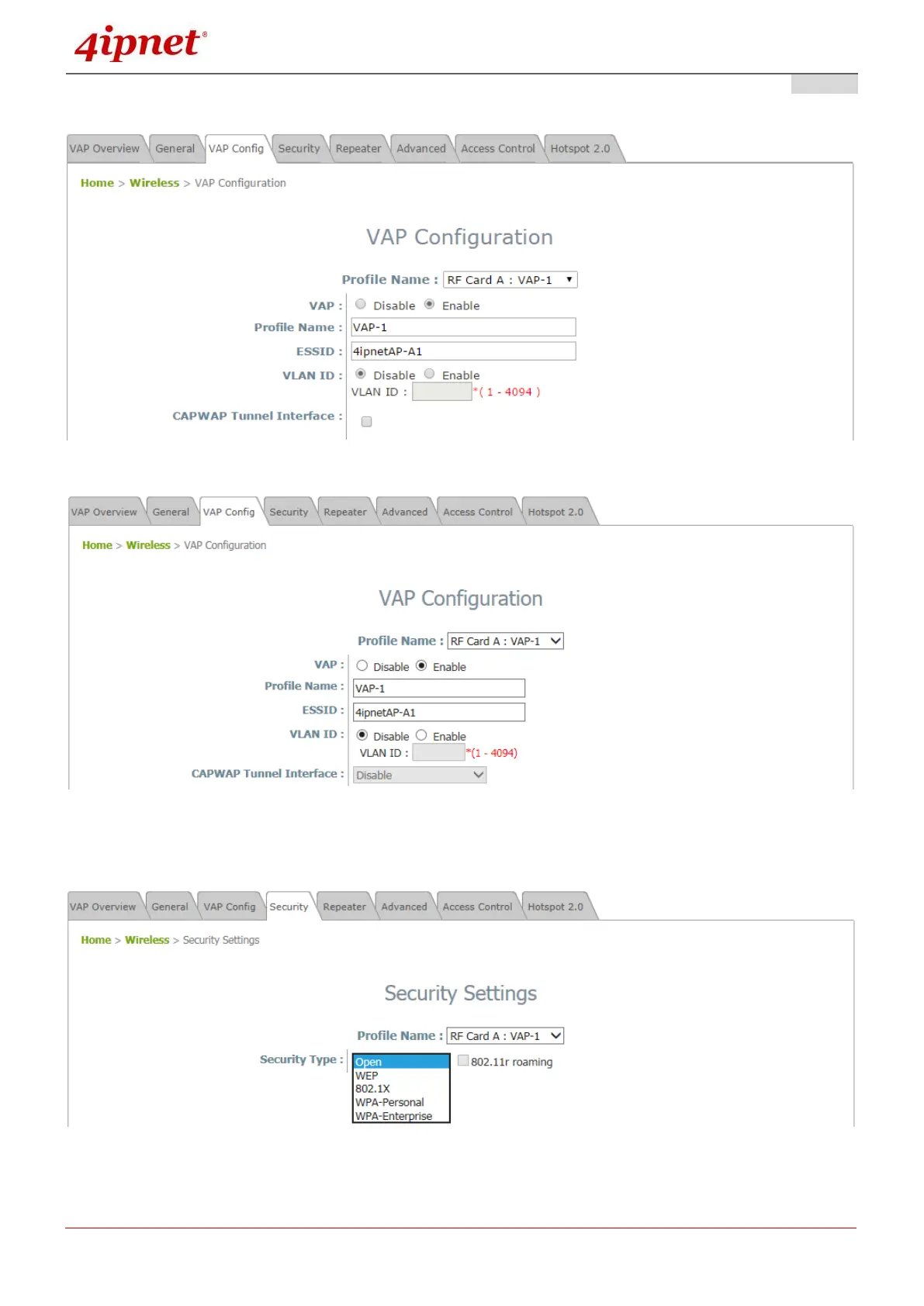 VAP Security Type Page
