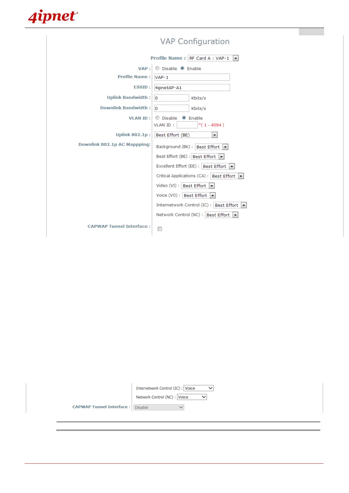 Uplink 802.1P per VAP: Priority levels for uplink traffic can be selected here. The options