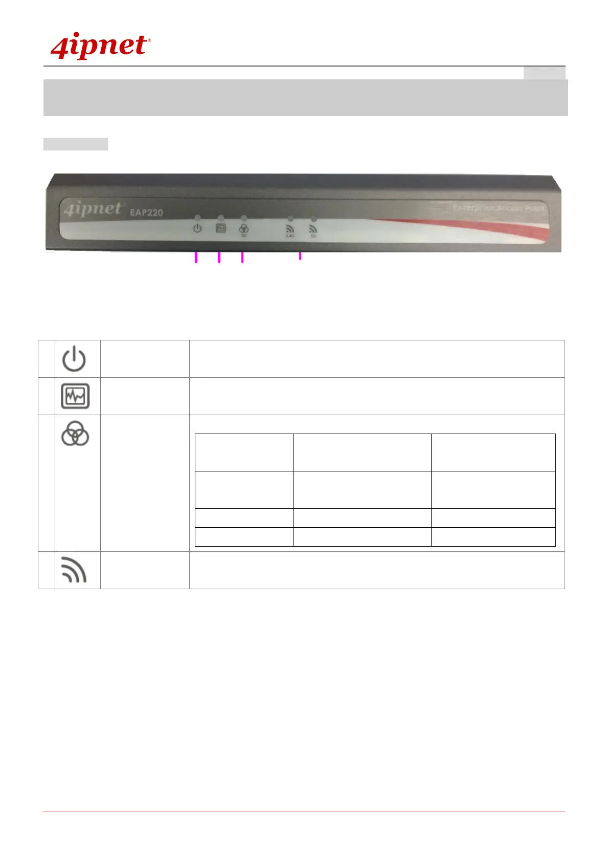 4IPNET EAP220 - System Overview; Front Panel Layout; Front Panel LED Indicators