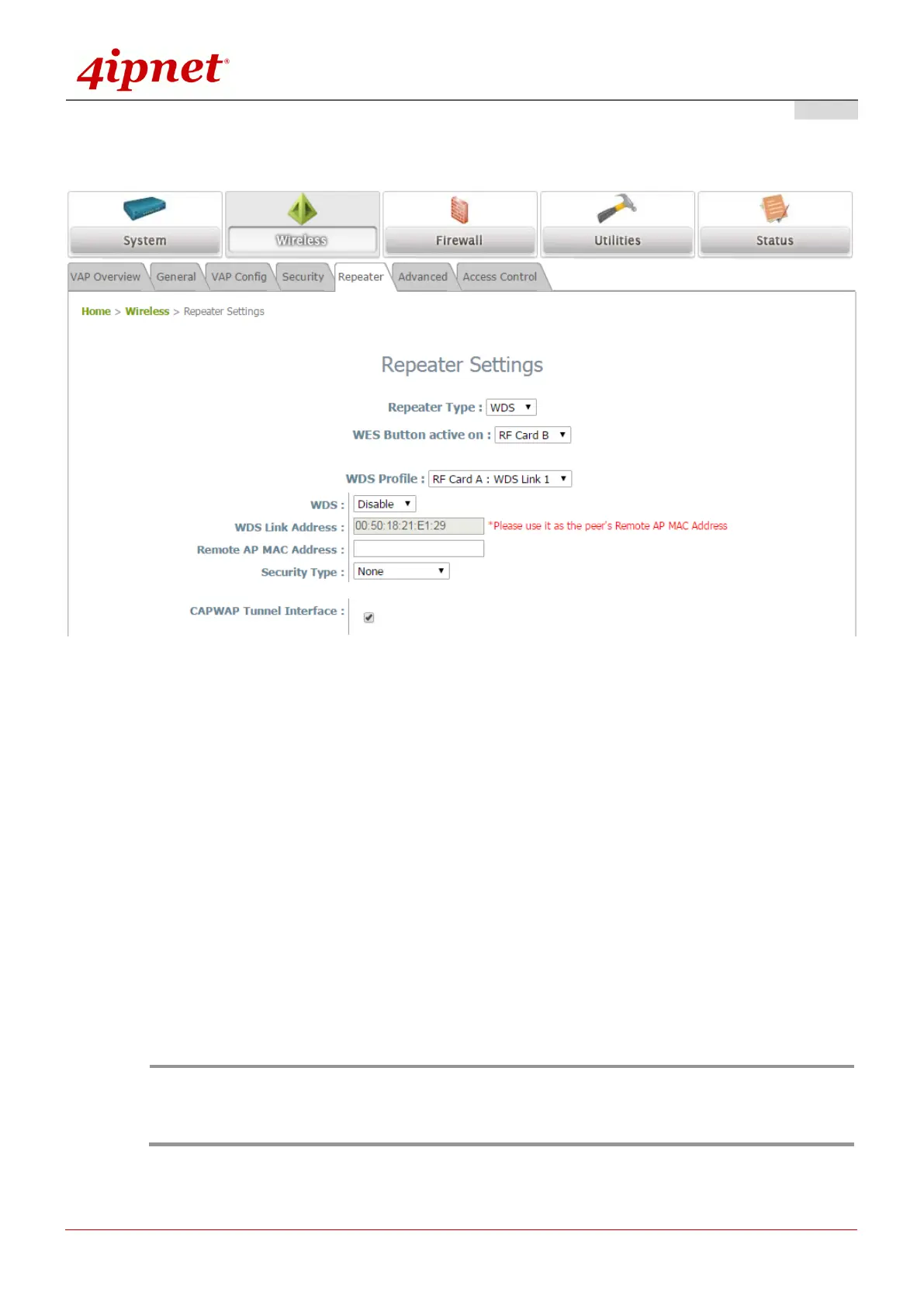 (b) Enter the Remote AP MAC Address (peer AP) and then Click SAVE.