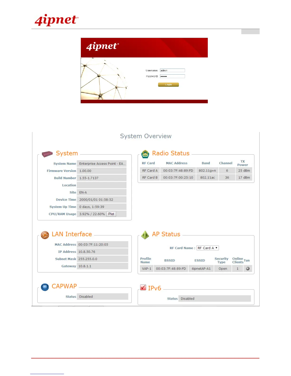 4. After a successful login to EAP760, a System Overview page of the Web Management Interface will