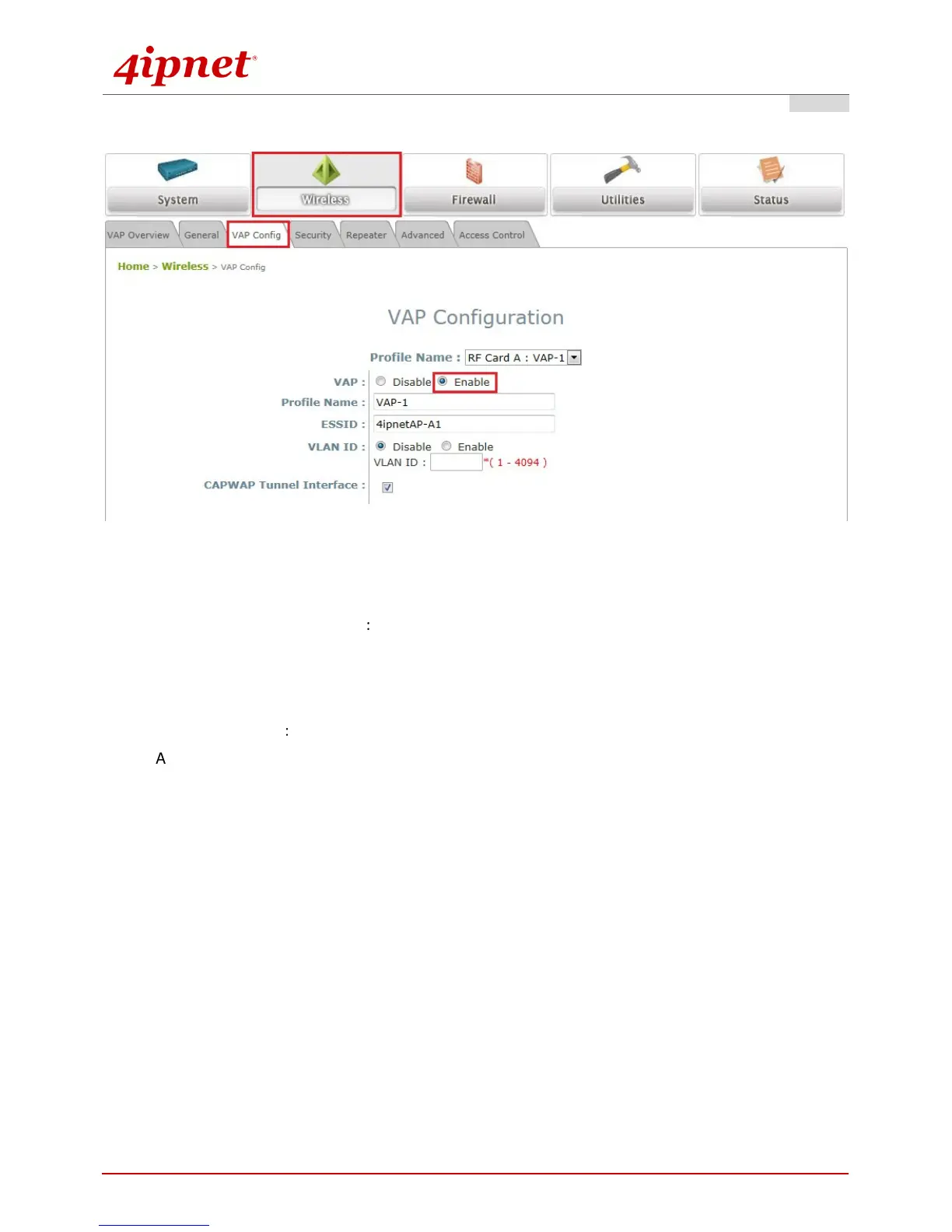 (a) Select the VAP Configuration tab to configure the settings of the desired VAP.