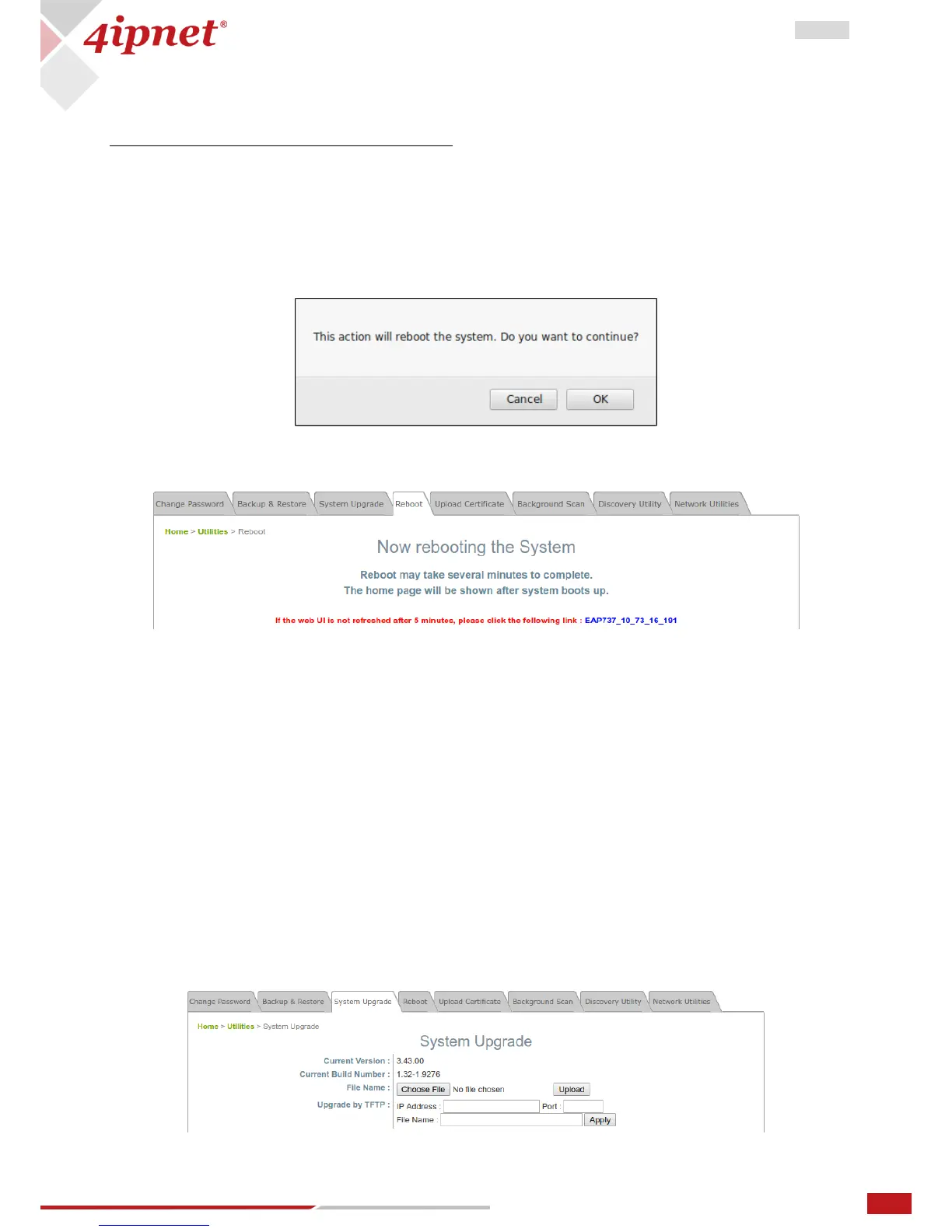 obtain the latest firmware from the 4ipnet Support Team. To upgrade the firmware, click “Choose File” to