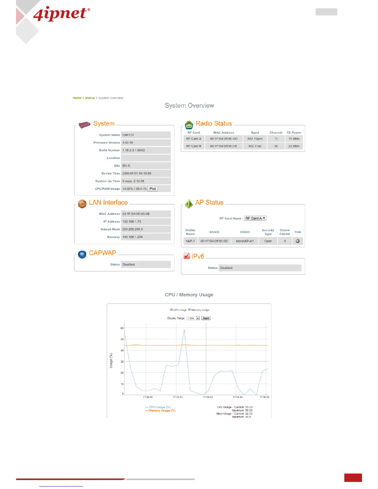 The following function tabs present the current condition and state of the system: Overview, Interfaces,