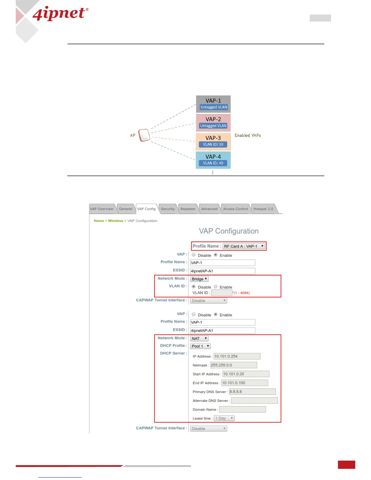 - Each VAP can be independently enabled or disabled, with its own settings (e.g.