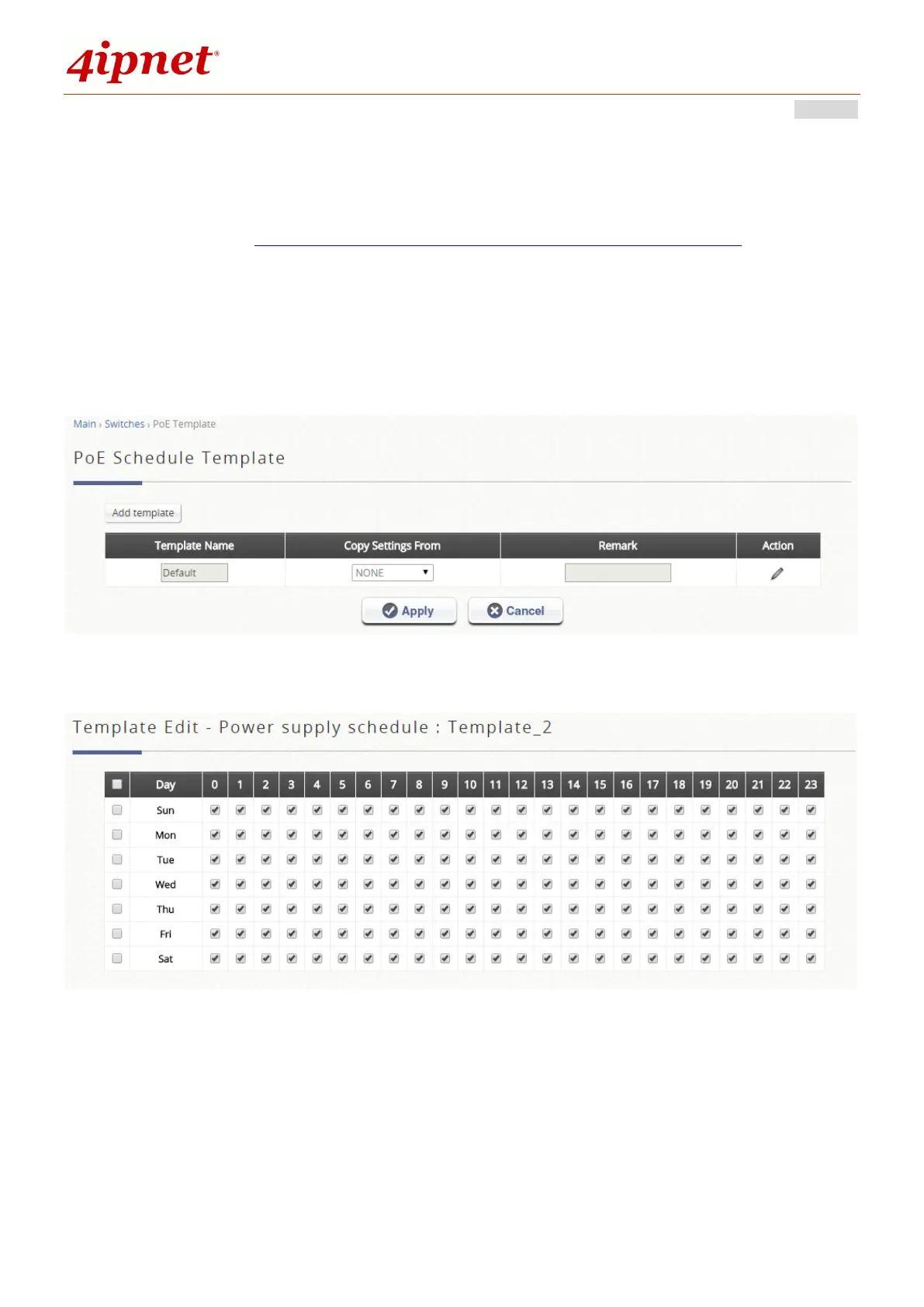 The PoE Schedule Template allows administrators to set a schedule for delivering