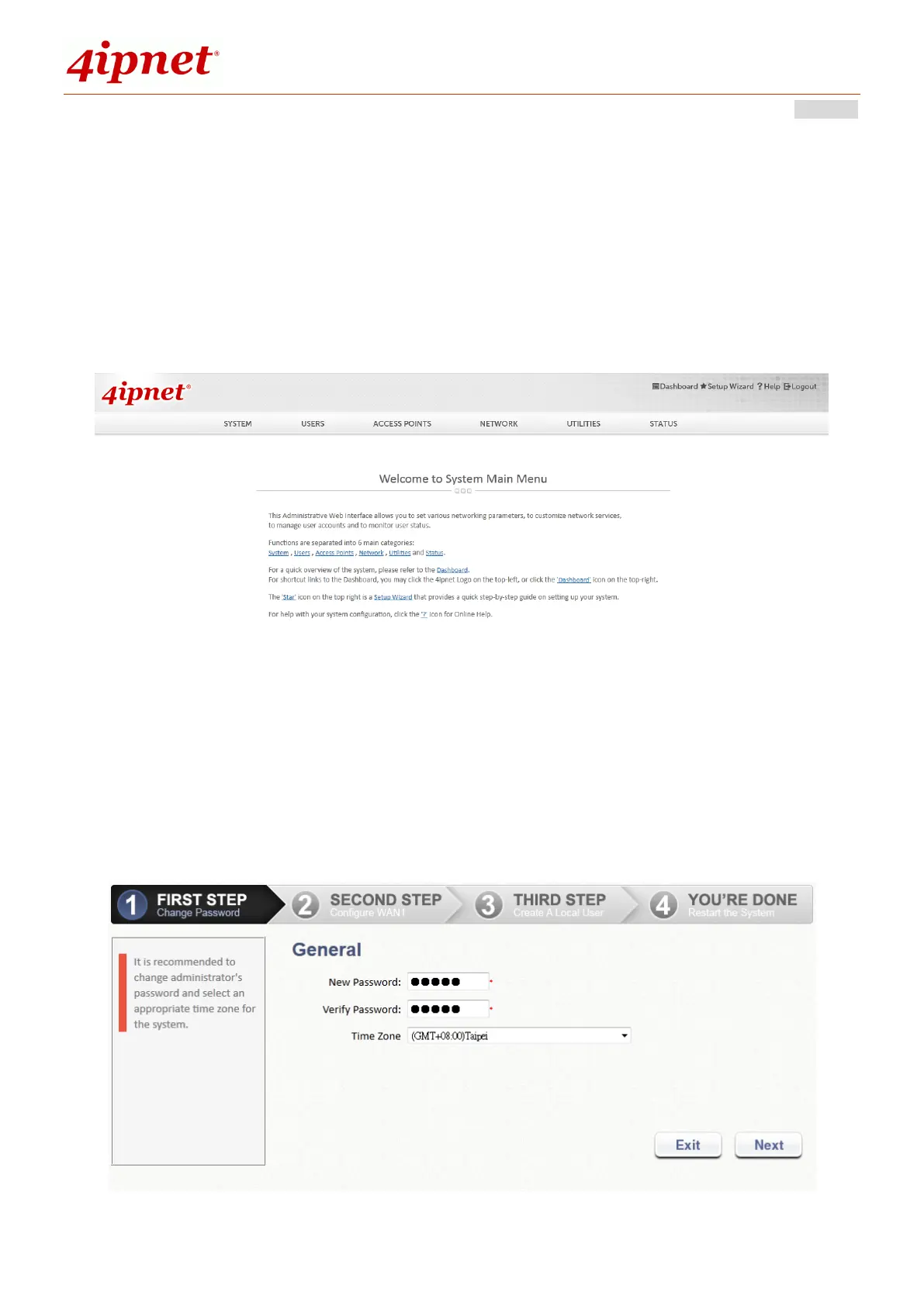 This wizard is to provide express setup procedures. Follow the instructions given at each step to change the