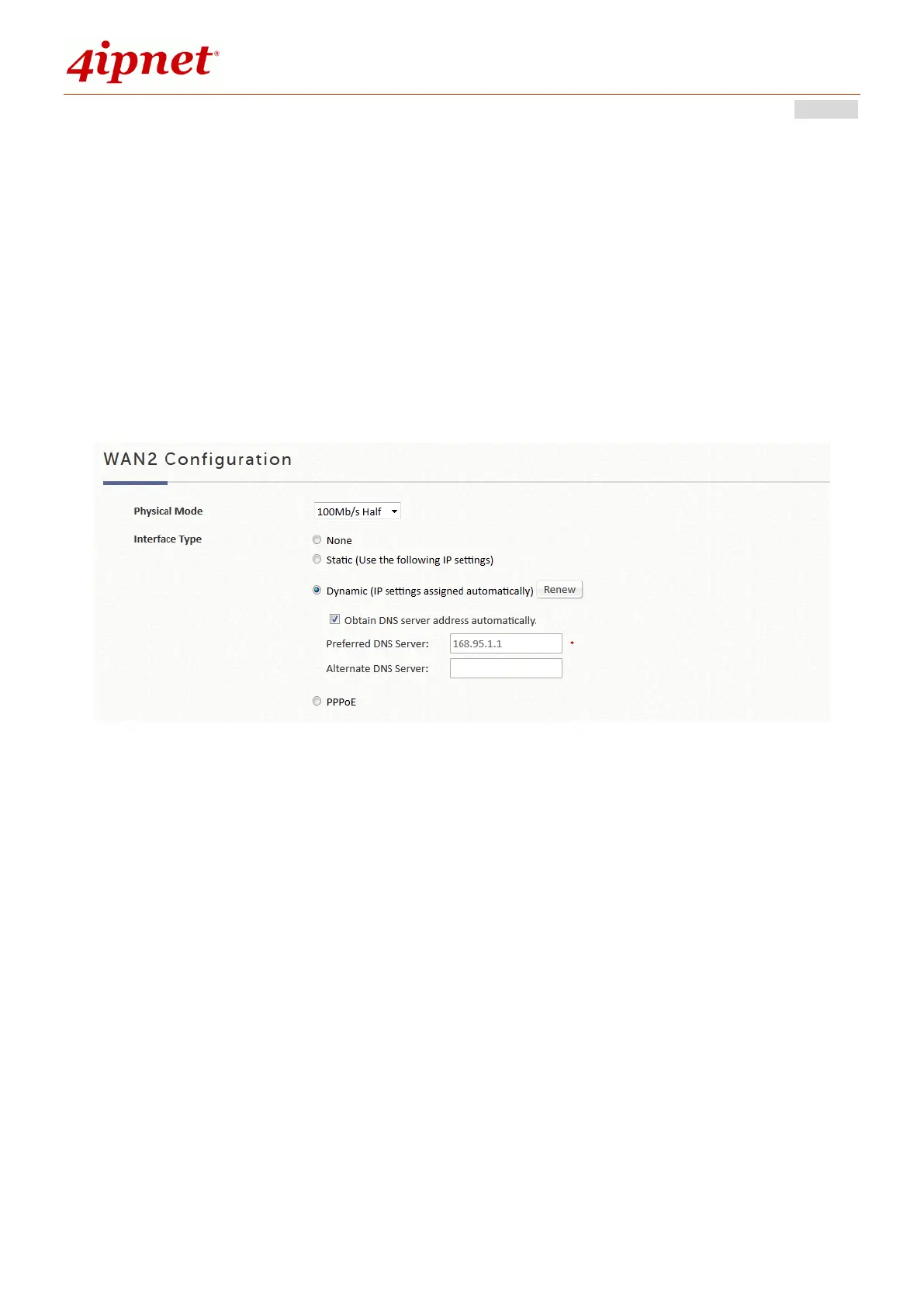 Dynamic: This option enables the WAN interface to be assigned with an IP address