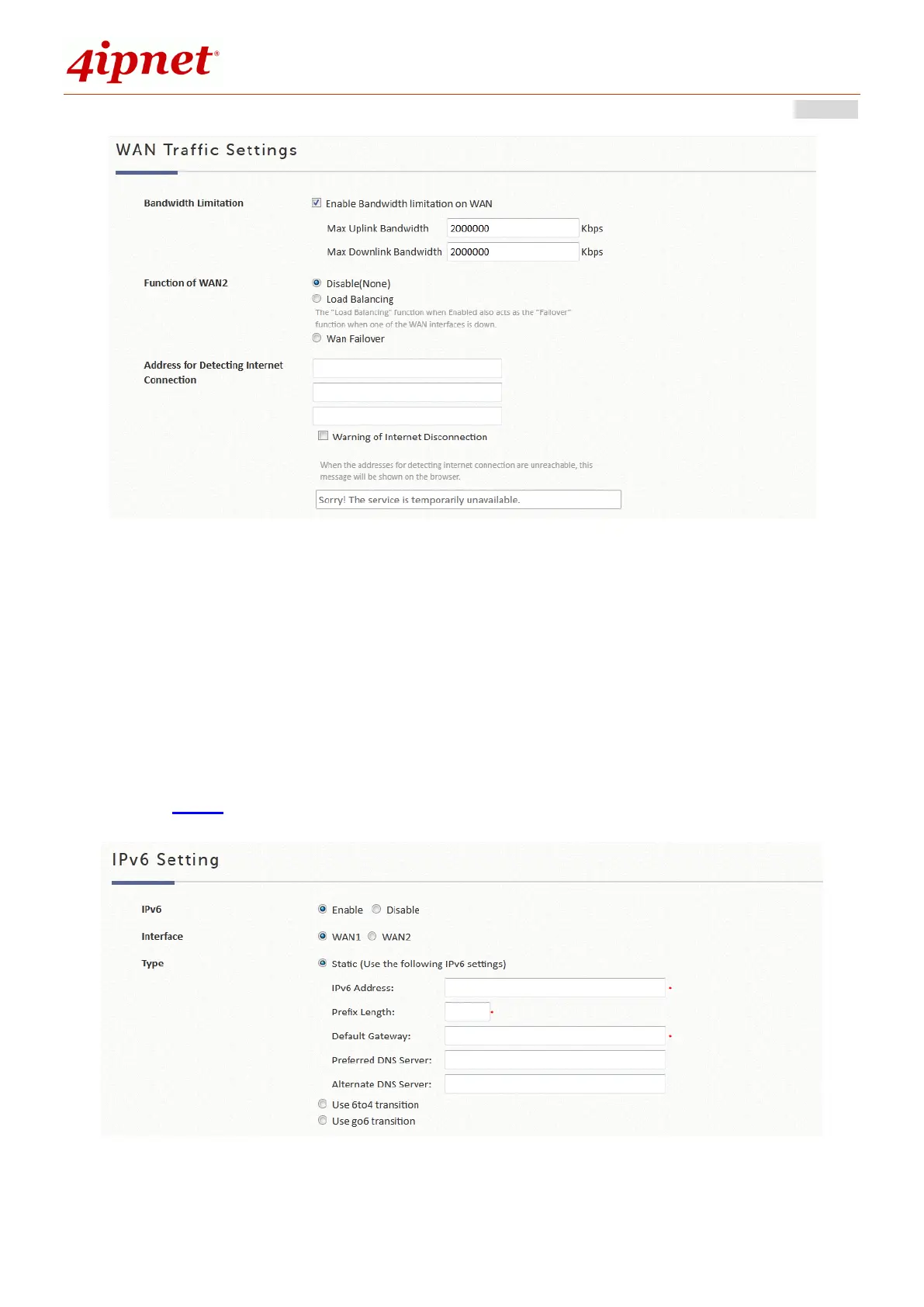Available Bandwidth on WAN Interface: This section of the configuration page allows the