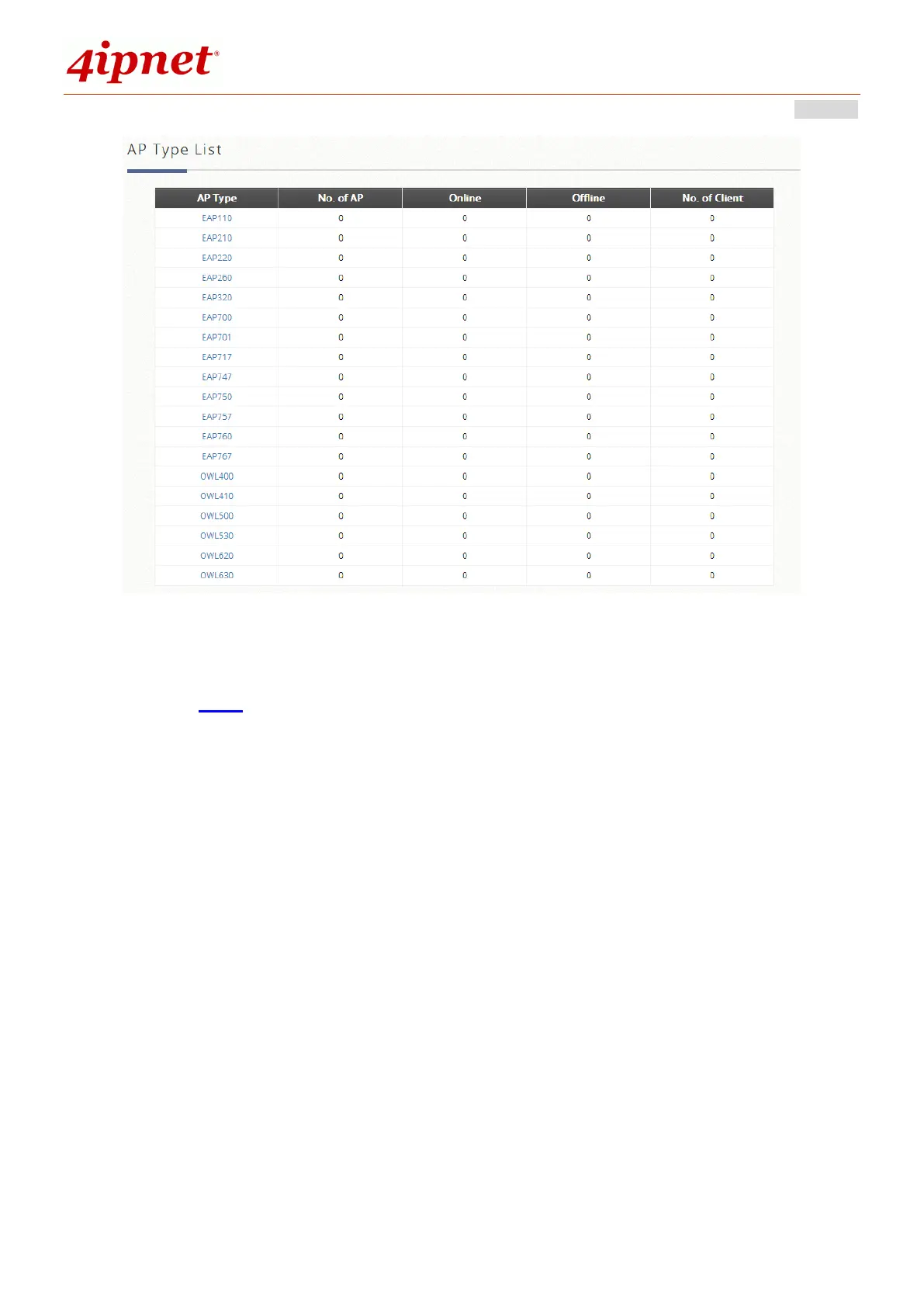 All of the supported APs under management of the system will be shown in the list. In the beginning, the
