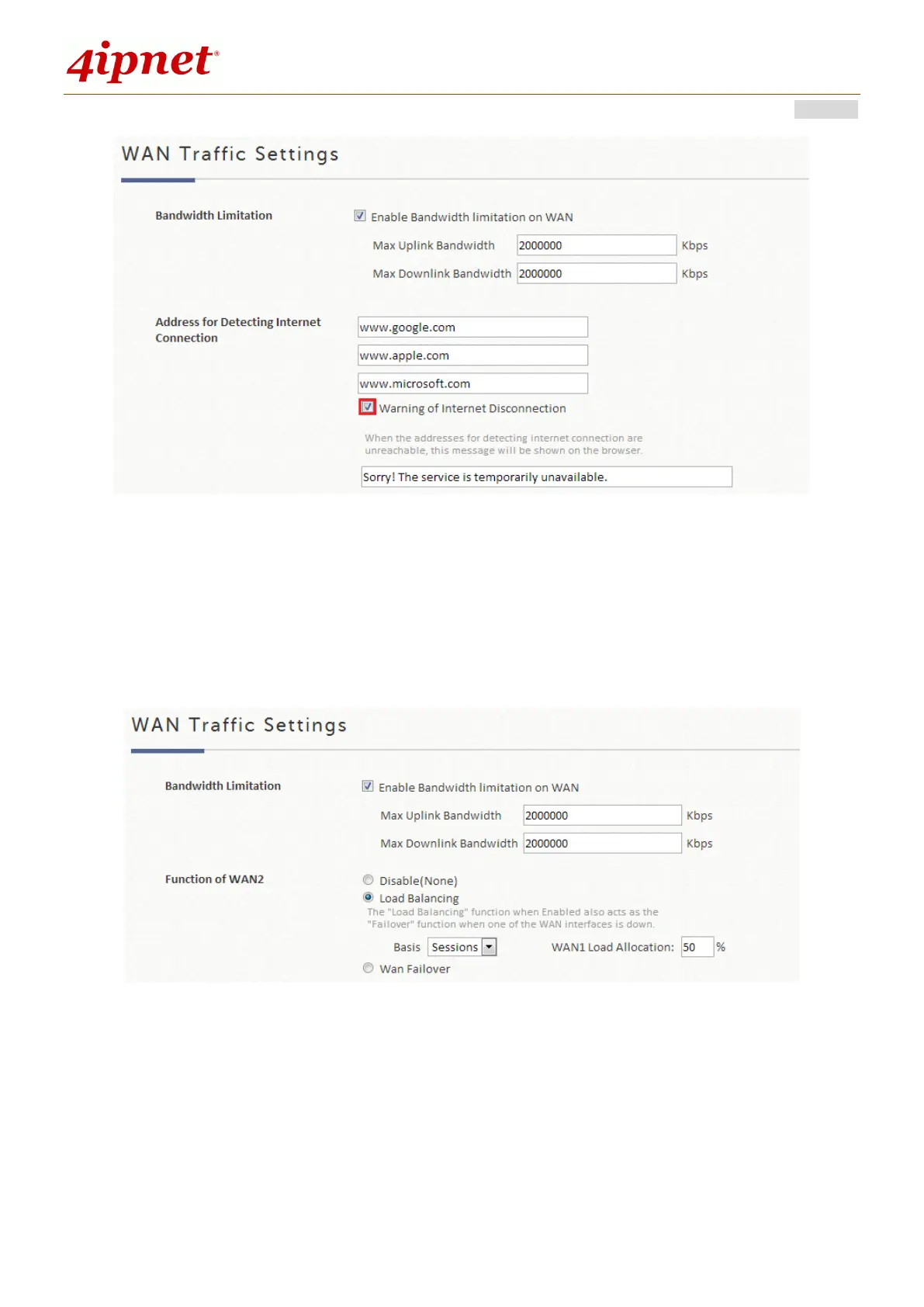 Administrator can spread the system traffic across WAN1 and WAN2 ports