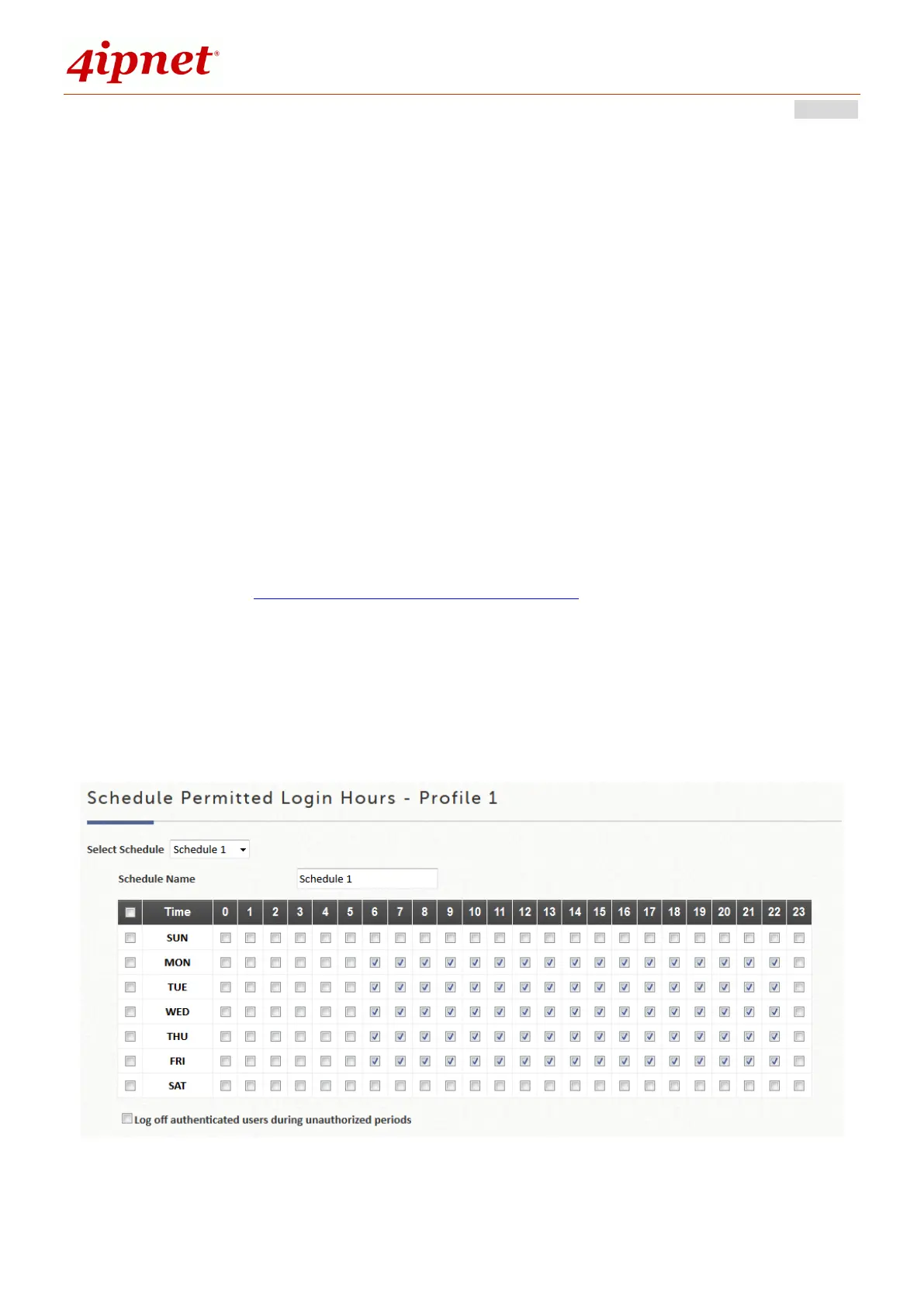 The Schedule is the assignment of allowed user login periods from clock time on an