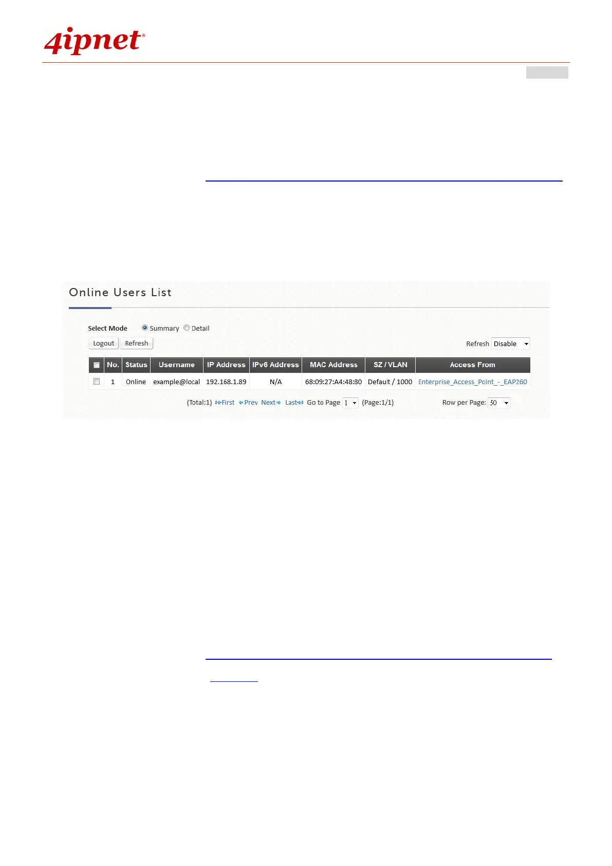 specific online user by clicking Kick Out and check the user access AP status