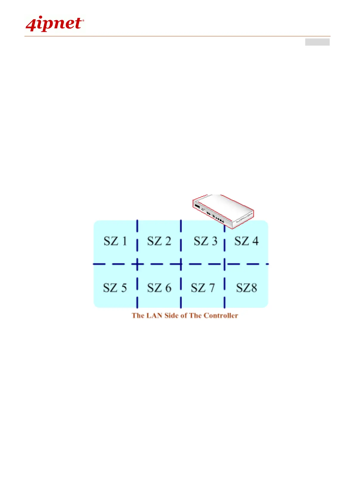 Service Zones are virtual partitions of the physical LAN side of a 4ipnet Controller.