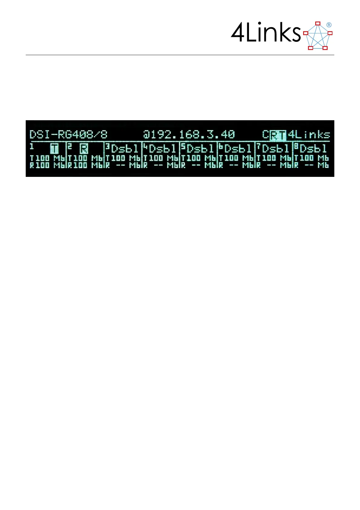 In normal operation, the display shows the state of the SpaceWire and Ethernet connections and any activity on