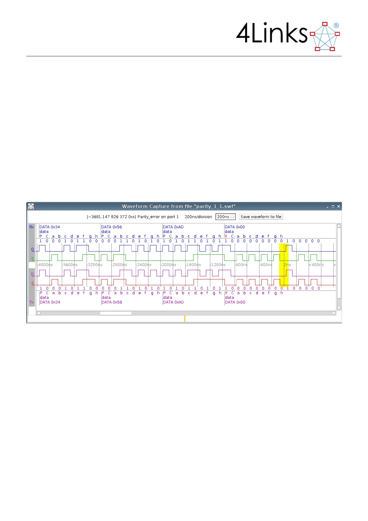 erroneous parity bit is shown in red. When the link engine detected the parity error, it