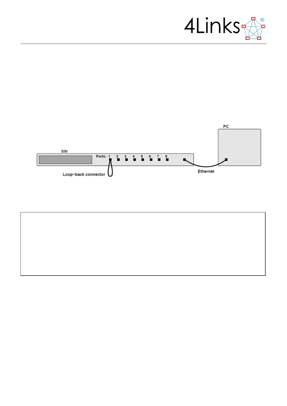 connecting port 1 of the DSI back to itself using the supplied loop-back connector: