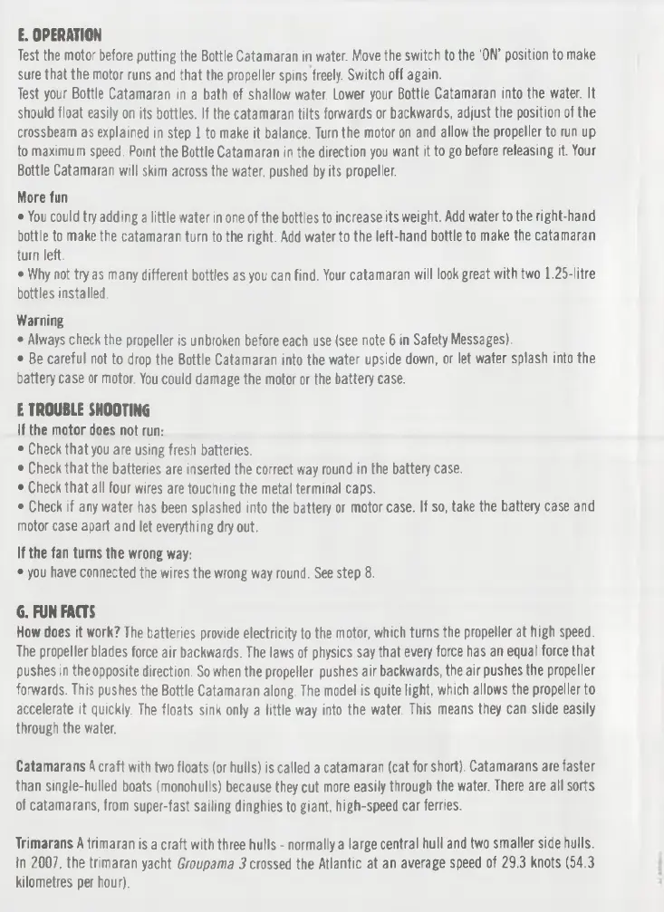 to maximum speed. Point the Bottle Catamaran in the direction you w ant it to go before releasing it. Your