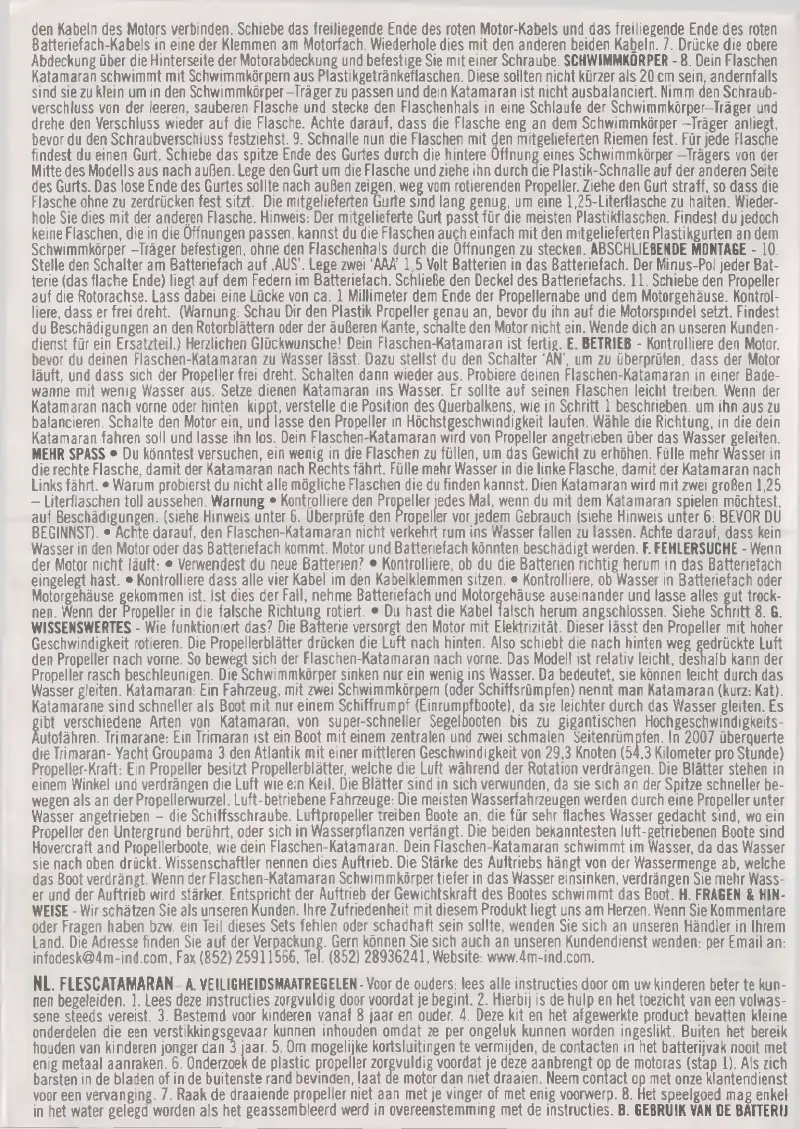 - Literflaschen toll aussehen. Warnung • Kontrolliere den Propeller jedes Mal, wenn du mit dem Katamaran spielen möchtest,