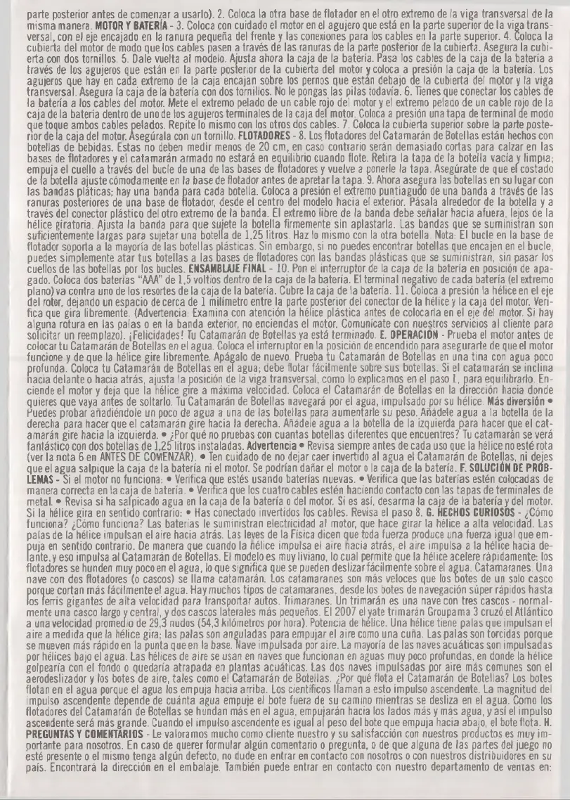 solicitar un reemplazo). ¡Felicidades! Tu Catamarán de Botellas ya está terminado. E. O PERACION - Prueba el motor antes de