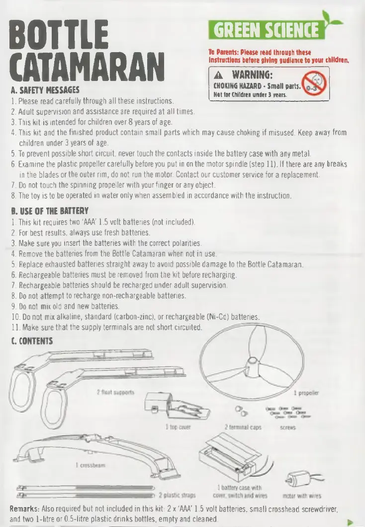 4. Remove the batteries from the Bottle Catamaran when not in use.