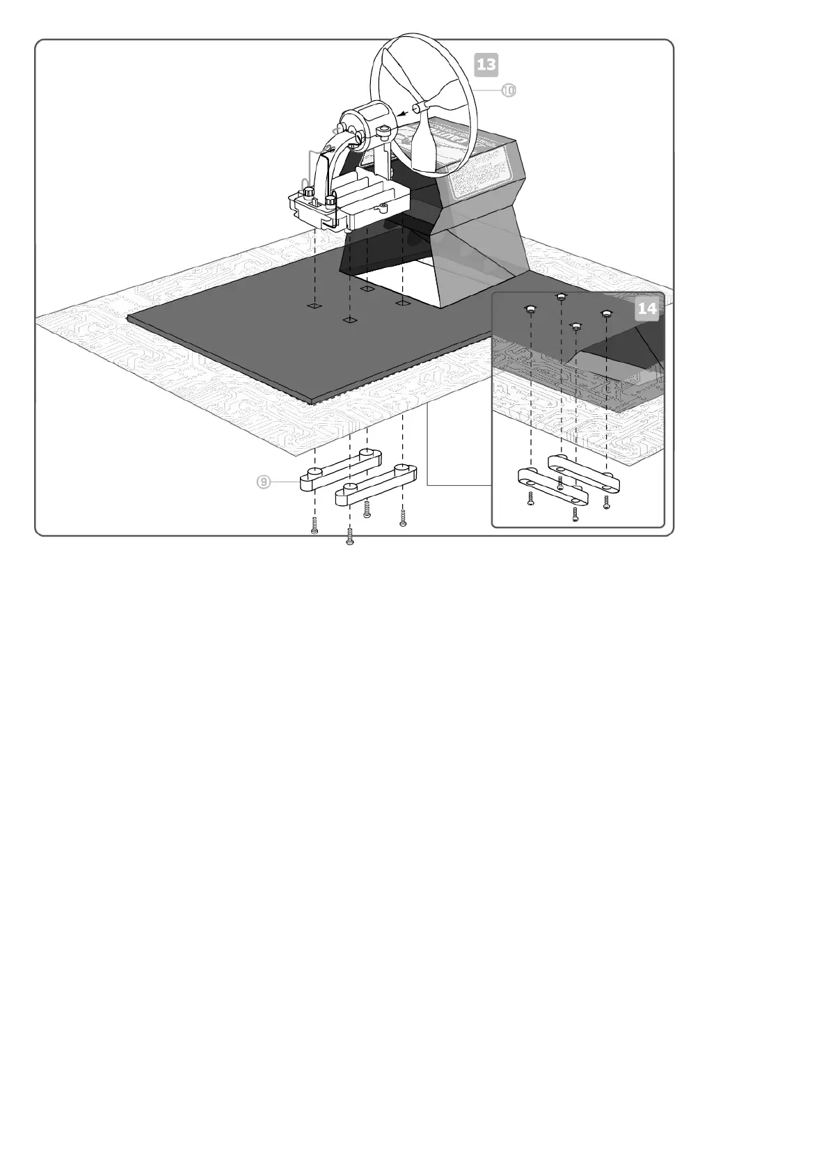 14. Push the fixing bars into their holes under the base. Put the battery compartment in place (with the
