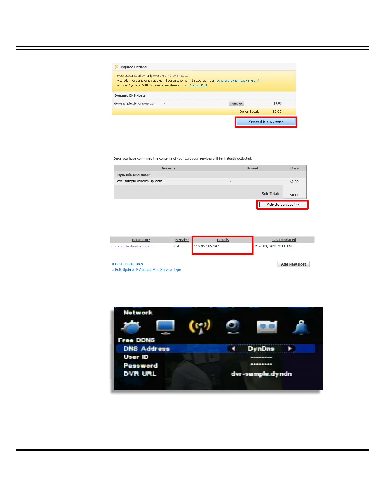 • DDNS address : Select the private DNS service name (Select DyDns )