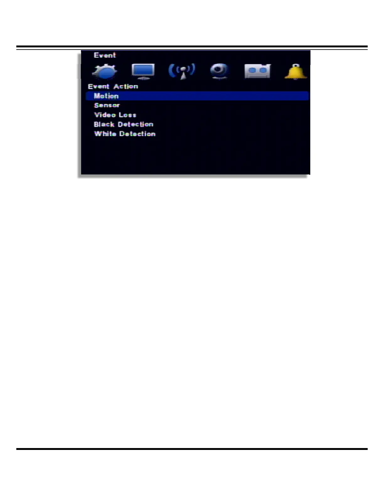 [1] Motion : It is the setup for PTZ, pop-up, relay out, buzzer in motion detection