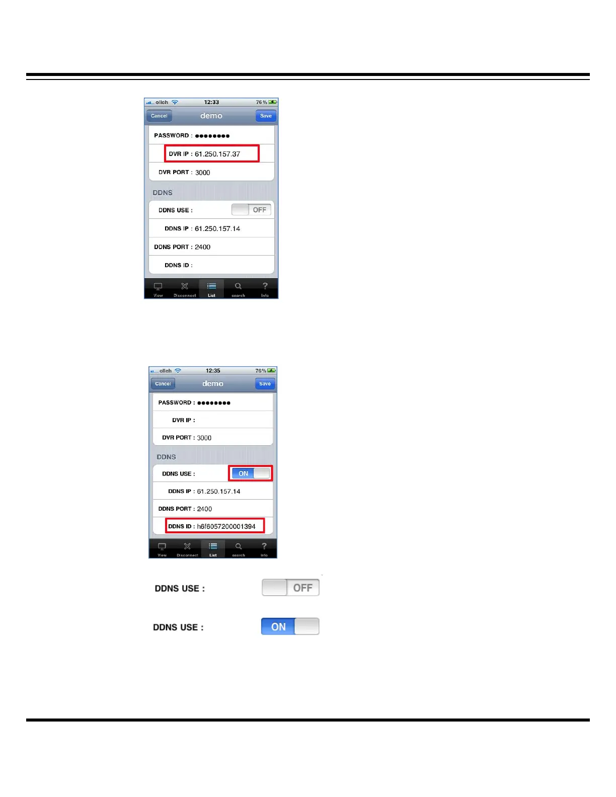 (Note : A user should keep their basic setting for DDNS IP and DDNS PORT.
