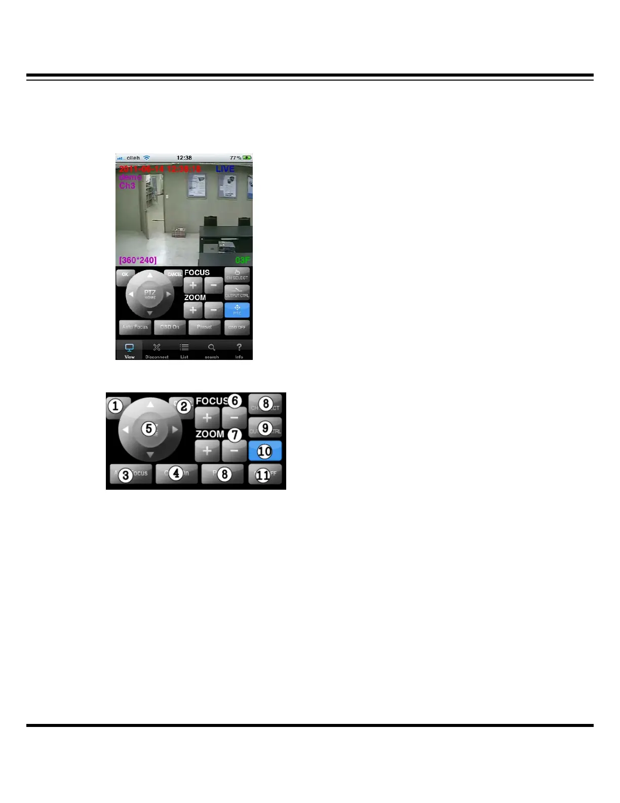 PTZ controlling is available on iPhone. The way how to control is the same with on CMS and DVR.