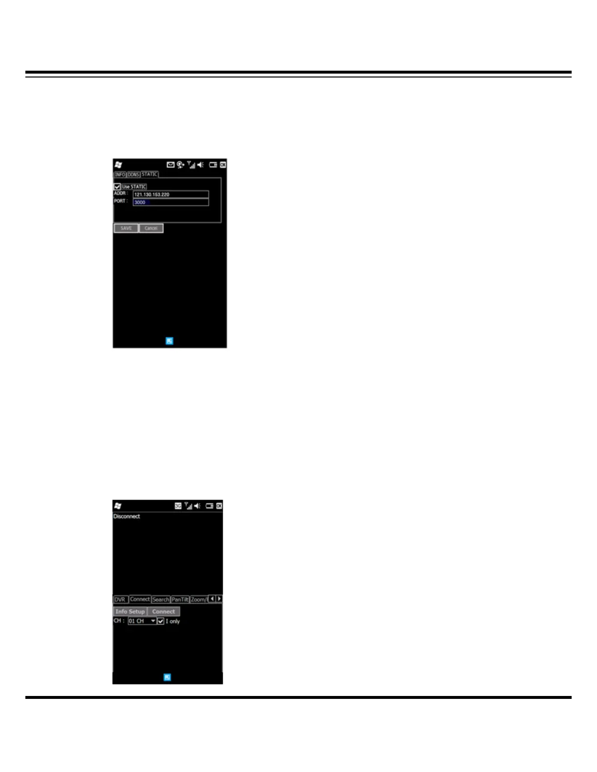 • PORT : Input the port of DVR. (Basic : 3000)