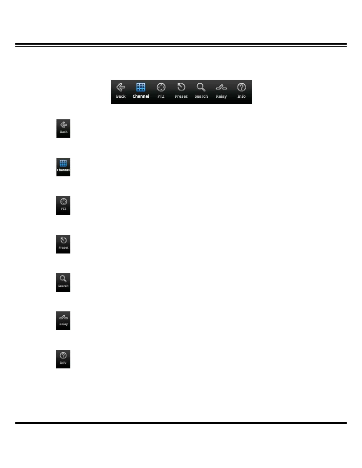 On the bottom line of screen, there is the main menu. It is for the monitoring changes.